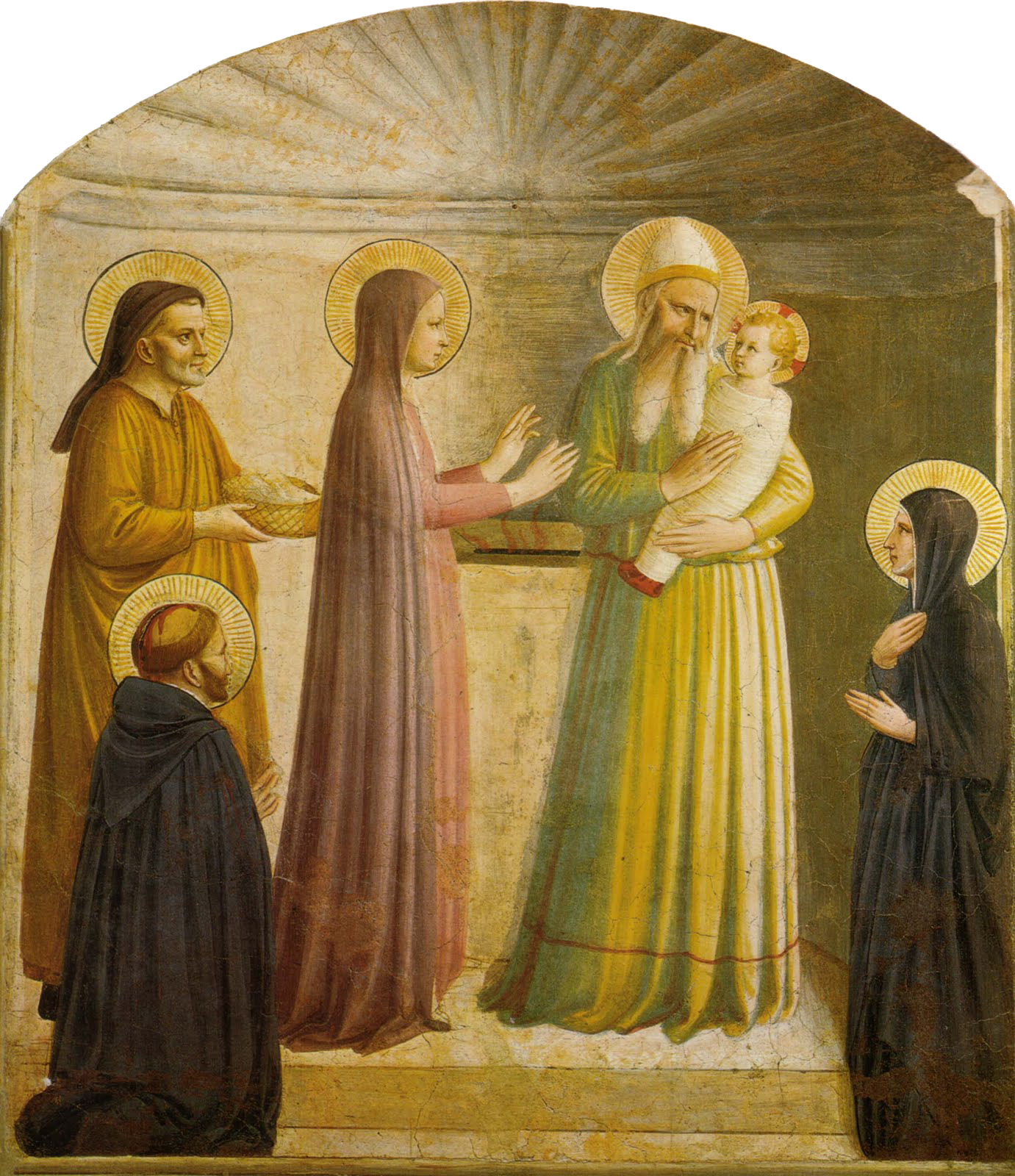 Quando se completaram os oito dias, para a circuncisão do menino, deram-lhe o nome de Jesus indicado pelo anjo antes de ter sido concebido no seio materno.Quando se cumpriu o tempo da sua purificação, segundo a Lei de Moisés, levaram-no a Jerusalém para o apresentarem ao Senhor, conforme está escrito na Lei do Senhor: «Todo o primogénito varão será consagrado ao Senhor» e para oferecerem em sacrifício, como se diz na Lei do Senhor, duas rolas ou duas pombas.Ora, vivia em Jerusalém um homem chamado Simeão; era justo e piedoso e esperava a consolação de Israel. O Espírito Santo estava nele. Tinha-lhe sido revelado pelo Espírito Santo que não morreria antes de ter visto o Messias do Senhor. Impelido pelo Espírito, veio ao templo, quando os pais trouxeram o menino Jesus, a fim de cumprirem o que ordenava a Lei a seu respeito. Simeão tomou-o nos braços e bendisse a Deus, dizendo:«Agora, Senhor, segundo a tua palavra, deixarás ir em paz o teu servo,porque meus olhos viram a Salvação que ofereceste a todos os povos,Luz para se revelar às nações e glória de Israel, teu povo.»Seu pai e sua mãe estavam admirados com o que se dizia dele. Simeão abençoou-os e disse a Maria, sua mãe: «Este menino está aqui para queda e ressurgimento de muitos em Israel e para ser sinal de contradição; uma espada trespassará a tua alma. Assim hão-de revelar-se os pensamentos de muitos corações.»